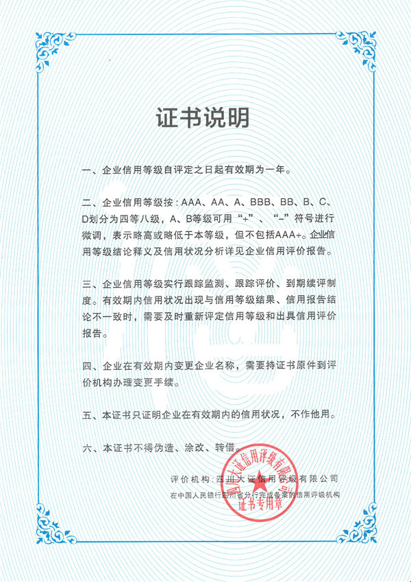 企业信用等级证书